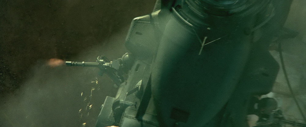 但在此处出现一个穿帮画面:格里姆斯在第一发没有打中目标时,退出弹壳重新装填第二发,但退出来的却是带着弹头的完整榴弹