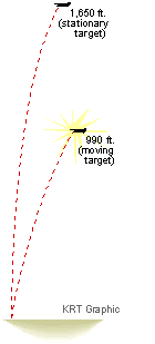 RPG-7的有效射高图,可以射击990英尺(约300米)高的移动目标或1650英尺(约500米)高的静止目标。