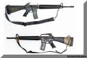 在超级64号战斗至死的两名狙击手中,一个是用加了消声器的M733(扮演加里·戈登),另一个是用M14(扮演兰德尔·舒加特),是电影中唯一的M14步枪。有相关资料提到当年的战斗中美军使用了M21半自动狙击枪,但电影中出现的却是M14步枪。M14步枪在越南丛林中表现不佳,最终被M16A1所取代,但其射程远,精度高,到现在还是特种部队(如海豹、三角洲等)所采用的精确射击支援武器。可能因为都是近距离的交火,所以电影中没有出现狙击步枪。