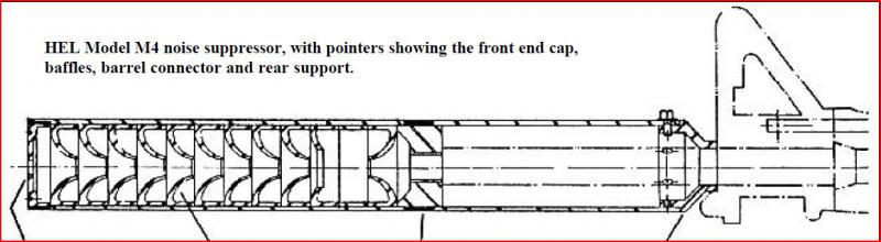 HEL E4A消声器的结构,可以看出包裹整根枪管的设计。虽然外形不一样,但OPS 3RD的后半段设计其实也差不多