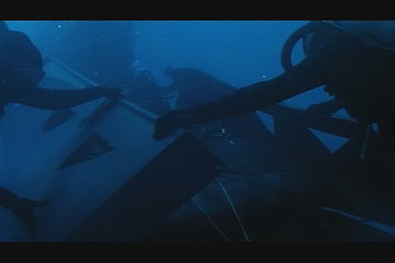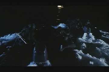 第一次出击是乘坐潜艇接近目标轮船附近,潜水出舱后再乘坐橡皮艇贴近,秘密登船,控制全船后再召来拆弹专家检查。在登船过程虽然一枪未发,却是本片中最让军迷观众们津津乐道的经典场面之一,而陈嘉上在1996年拍摄的《飞虎》里也模仿了一把。