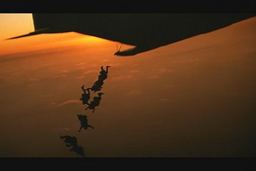 接着第二次出击是乘坐C-130,通过商业航线接近目标地区,用HALO(高跳低开)的方式渗透进入。前面我也提到了,那个什么《深入敌后3》里面的HALO场面就是直接从这部海豹突击队里剪出来用的,有够无耻啊。