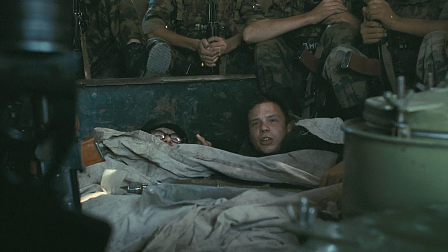 艾云和约翰藏身在运送士兵的卡车弹药堆下通过检查站,在这里出现有AK-74的镜头,不过坐在最外面的两个士兵也是使用AKM的。