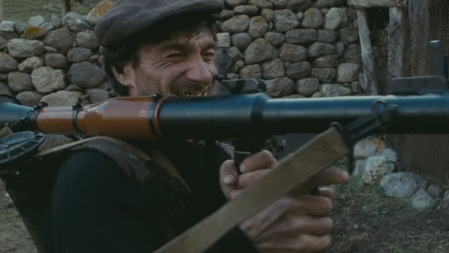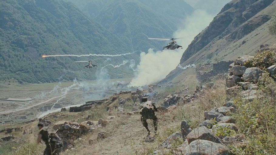 影片中有许多AKM都挂有GP-25榴弹发射器,这种枪挂式40mm榴弹发射器是俄军步兵班配备的面杀伤支援武器,虽然在很多西方电影上都出现过AKM,但在西方电影中却鲜有GP-25的出现,在史泰隆以阿富汗战争为背景的电影《第一滴血3》中只是把美制的M203挂在罗马尼亚生产的AKM下面。当然了,要是现在再来拍摄《第一滴血3》,还可以找到真正的米-24而不需要用“大黄蜂”加短翼来改装。这部《战争》是俄国人拍的,要找许多真正的GP-25当道具自然要容易得多了。