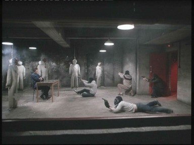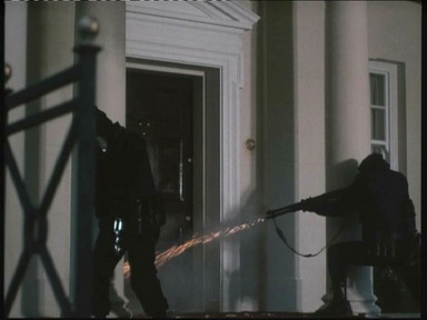 而攻入美国大使馆内的经过,则和当年SAS攻入伊朗大使馆的过程很相似,一部分人通过绳索从窗户进入,另一部分人则从门口冲入,恐怖分子同时受到几个方向来的进攻,顾此失彼,也组织不起有效的抵抗。虽然与现在那些“火爆”的好莱坞动作电影相比,这部片子中的战斗场面显得有些粗糙和简单,不是靠花巧的特技动作渲染和后期电脑动画制作和剪接技巧来支撑的,但看起来真实感却比较强,再加上剪接得很紧凑,却又不会让人眼花缭乱,能清楚地展现出整个攻击行动的流程,所以这个战斗场面也是我经常拿出来重温的部分。