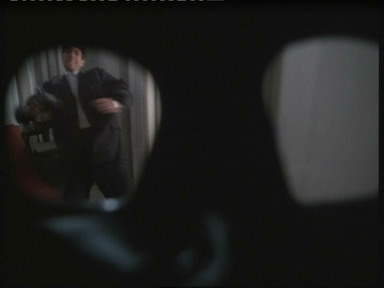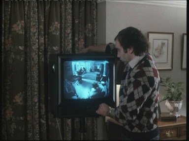 通过针孔摄像机监视主角妻儿被劫持的情况