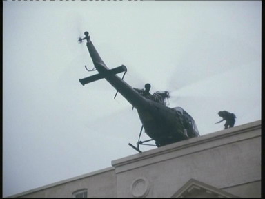 通过直升机降落到大使馆屋顶,然后用绳索从窗口突入