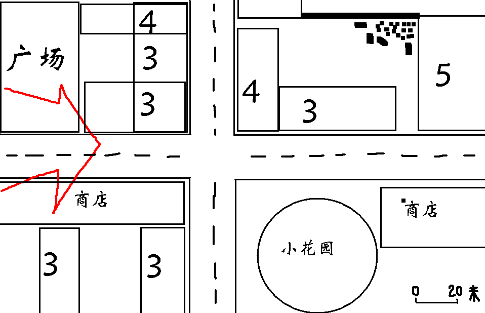 我们可以肯定兵力只能在就在路东北的建筑物里面,路西南的商店,3层建筑物应该是友邻部队控制的。