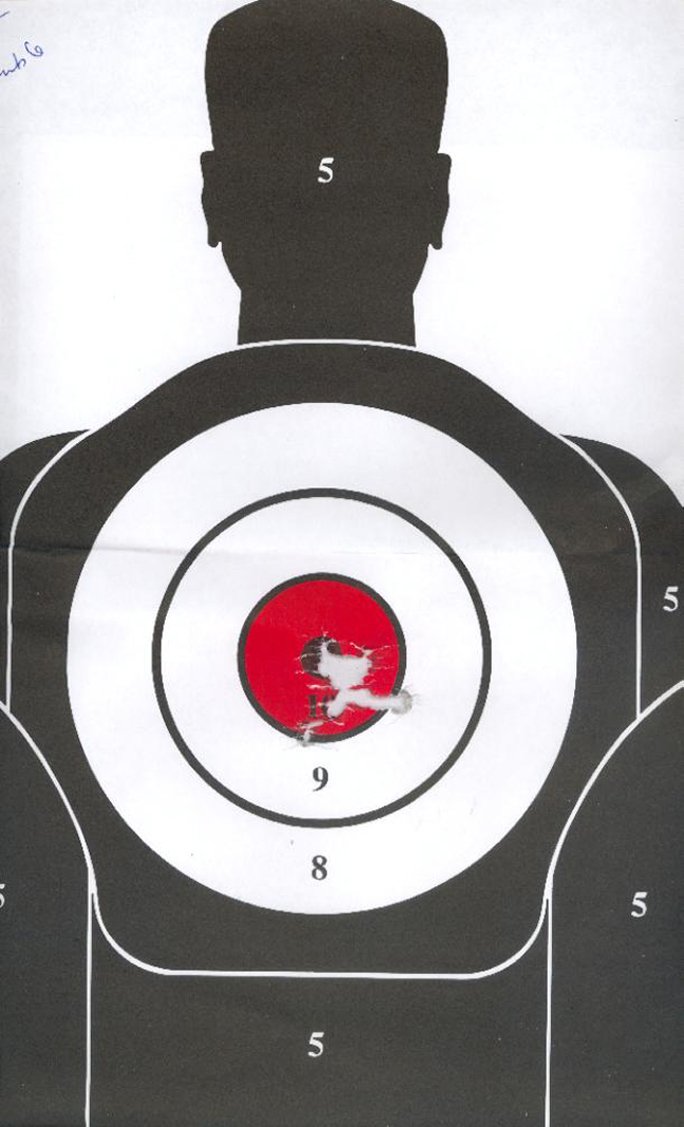 图一说明:勃瑞塔92FS 在21英尺距离射击。图为一比一。