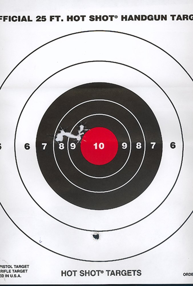 图三:Sig Sauer P220 点四五口径,50英尺距离五发射击。图为一比一。