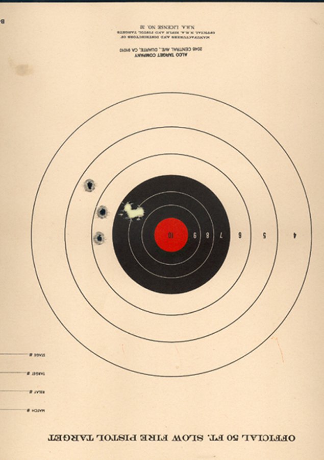 图五:Colt Officer 转轮手枪,50尺六发射击,散布距离一点五英寸。图为一比一。