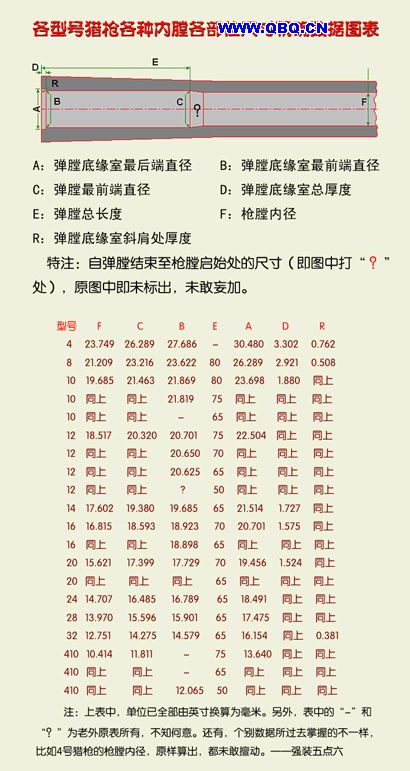 多种猎枪弹膛的规格,可以推算出相应猎弹的尺寸