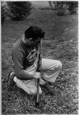 单手装弹的具体方式,首先单膝(强手一侧)跪地,把霰弹枪放置于受伤手臂一侧的腹股沟上,然后将枪托抵住强手一侧的膝盖(已跪下),这样就能很好的稳定住枪身,用未受伤的手来将霰弹装入枪膛或者弹仓。