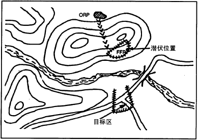 在所需物品都打包装好后,狙击运动进入第二个阶段:前进到ORP,再从ORP前进到FFP。ORP是狙击小组作最后准备和从那里进入FFP运动阶段的地点,伪装服通常是在这里才穿上的,有必要的话,还需要在这里藏起作战时不需要的装备。