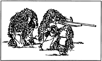 图例:采用卧姿方式的狙击手和观瞄手位置。