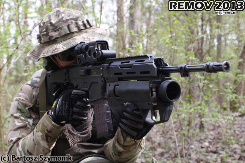 ![]() 2009年时的MSBS-5.56K型的枪管只能伸缩,不能折叠 |
