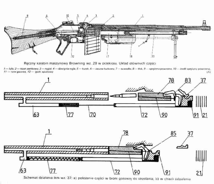 BAR在比利时开始生产后,波兰在1927年12月10日与FN公司签订了一份合同,由FN公司为波兰军队生产10,000挺口径为7.92×57mm毛瑟弹的轻机枪,这种轻机枪其实是在柯尔特R75(1925年推出的商业型BAR)的基础上,但根据波兰军队的稍作修改的BAR变形枪。被波兰军队采用后,该枪被正式定型为 “1928年型7.92mm勃朗宁轻机枪”(7,92 mm Ręczny karabin maszynowy Browning wz. 1928),或称为rkm wz.28。wz.28轻机枪与M1918 BAR相比,主要的改变有手枪形握把、两脚架、开放式V型缺口照门,并枪管稍为延长。