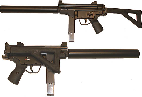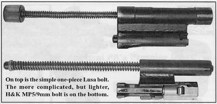 LUSA冲锋枪的枪机(上)与MP5枪机的比较(下)