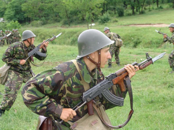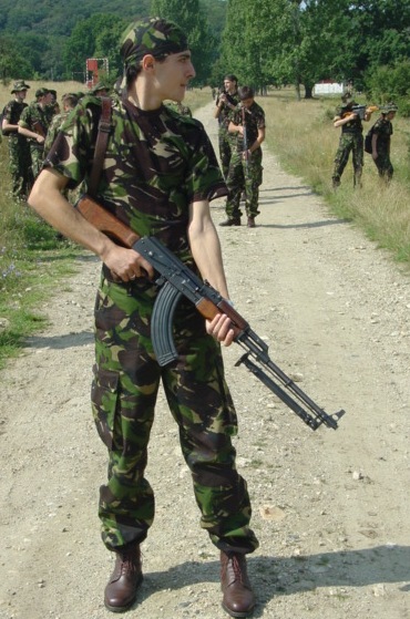 ![]() 扛上刺刀的AKM的罗马尼亚士兵 |