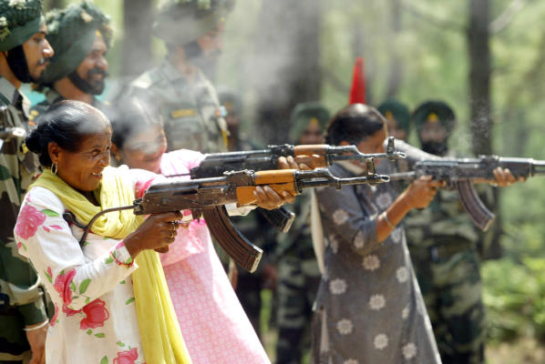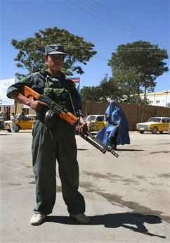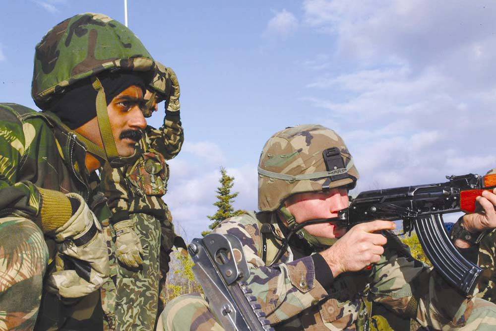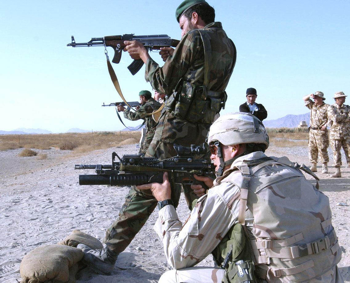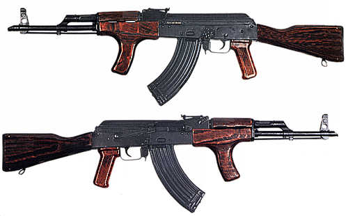 ![]() 美军训练出的阿富汗新军使用的万国牌AK,左边一人使用的是AIM,旁边的人使用的是中国的56式 |