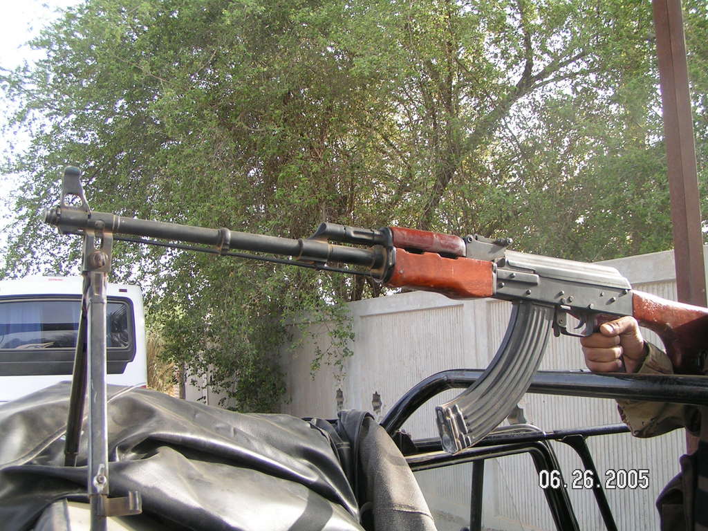 这名阿富汗警察在罗马尼亚的1964型(仿RPK)上安装匈牙利AMD-65的制退器