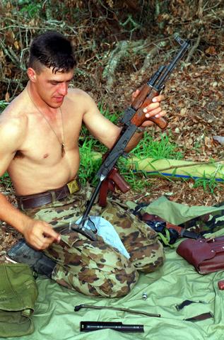 ![]() 正在维护他的1965型的罗马尼亚士兵 |