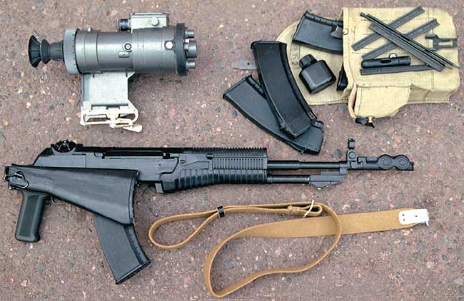 在1981年,苏联军方宣布了一项名为“阿巴甘”(Abakan,俄罗斯的一座小城市)的新一代自动步枪研制选型计划,旨在研制作战效能高出AK-74突击步枪的新型突击步枪。虽然AK-74步枪的可靠性极佳,但其精度却一直受到诟病,尤其是点射时的散布非常大。而“阿巴甘”的目的就是要研制出有较高点射命中率的新型突击步枪。