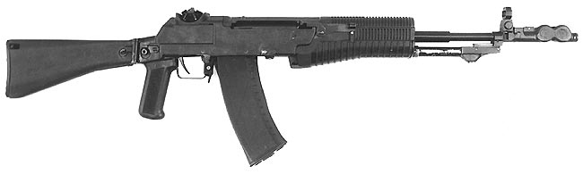 这一型号又朝最后定型的AN-94型的方向迈出了一步。这是采用可旋转的“Asterix”型觇孔瞄具的第一支样枪。枪管上装上了AK步枪的准星。枪口制退器很短,其侧面有2个孔。刺刀座斜着安在枪管前左侧,其角度计算以刺刀在射手用普通瞄具或瞄准镜瞄准射击时不挡住射手视线为标准。