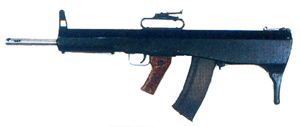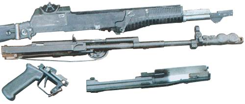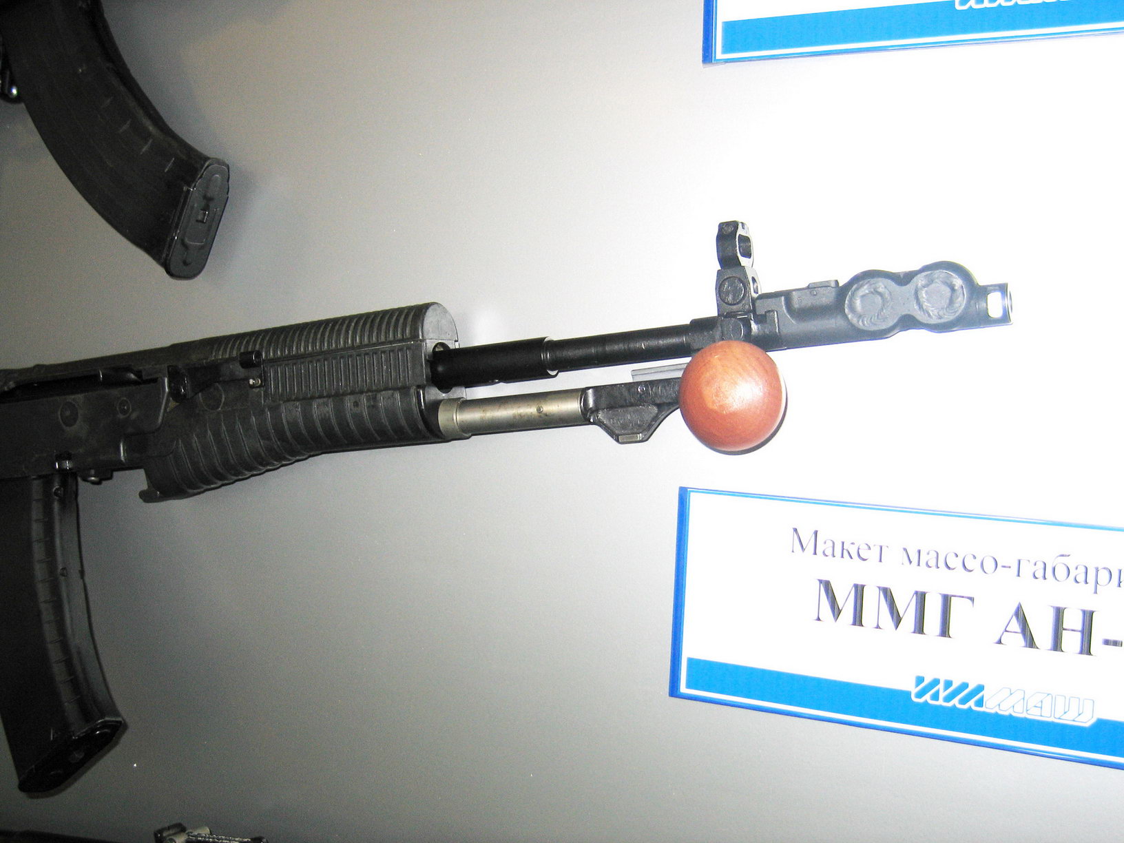 这是尼科诺夫根据“阿巴甘”计划设计的第一支样枪,采用的是无托型结构。尼科诺夫说,他的这个方案是受德国MP43和MP44冲锋枪的启发提出来的,同时也模仿了AK-47的结构。