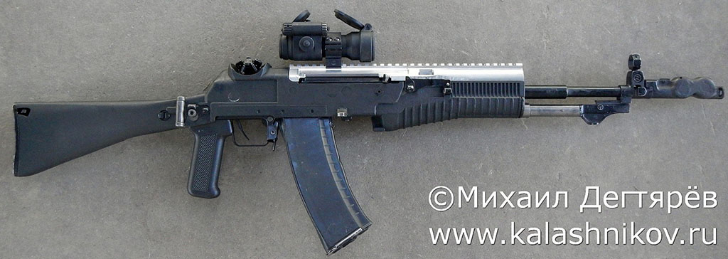 这支样枪采用传统的结构。这是由于在对前两种样枪进行紧张的试验以后,射手觉得无托结构用起来极不舒服,因为在射击以后从抛壳口逸出大量的火药燃气。有时射手不得不把枪放下,张着大口喘粗气。另外,无托型步枪供左撇子射手使用时问题很多。尼科诺夫认为,无托型步枪给特种分队用很好,但不适合全军使用。