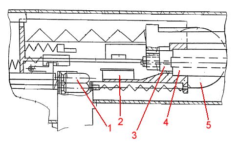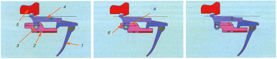 ![]() 1-扳机;2-单发杠杆;3-扳机连杆 |