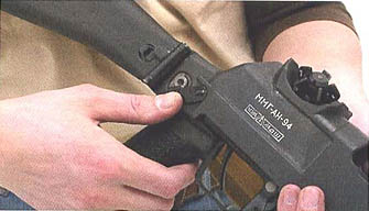 与AK-74和AK-100系列不同,AN-94的后托向右侧折叠。这样的设计人机工效更好,因为折叠与打开快速、容易,背起来舒服。