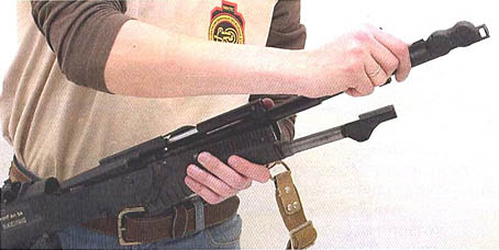 然后,击锤处于待击位置,射击中断。要重新射击,先要松开扳机,此时扳机固定板和单发杠杆回到各自的起始位置。在重新扣引扳机的过程中,击锤打击击针,下一个2发点射开始。