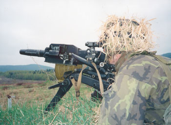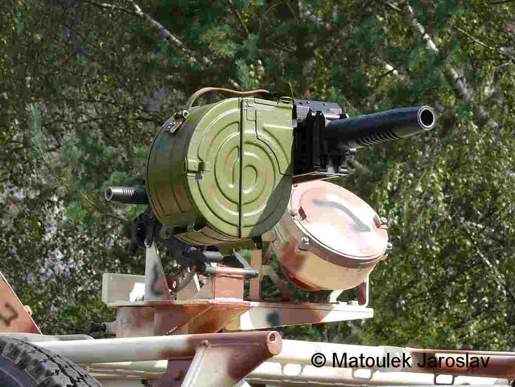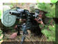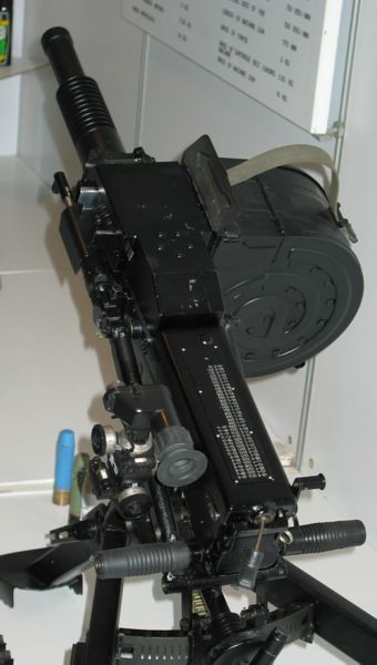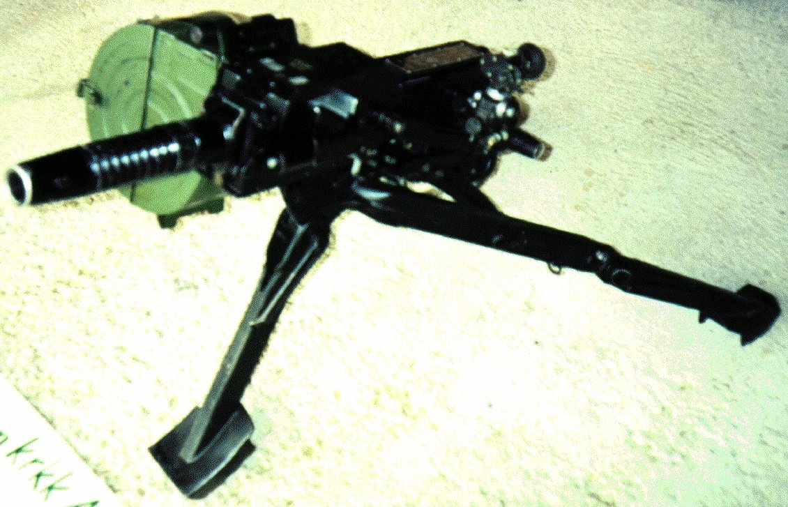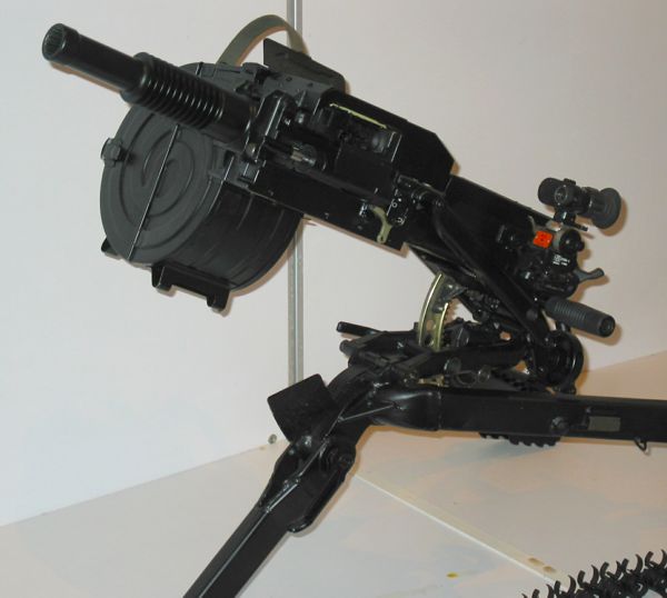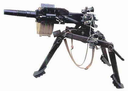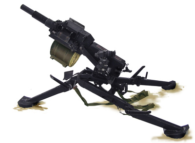 供步兵使用时,射手通过机匣尾部两个横向握把控制,拇指控制的扳机按钮在握把之间。T形拉机柄位于机匣后部,并与枪机通过钢缆和机框连接。射手可根据需要选择单发或连发射击。