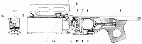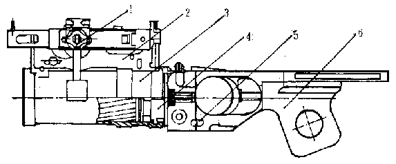 ①瞄准具; ②连接座; ③发射管; ④闩体; ⑤击发机; ⑥指孔形小握把