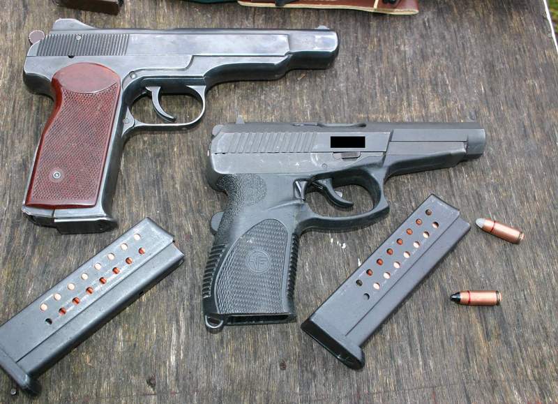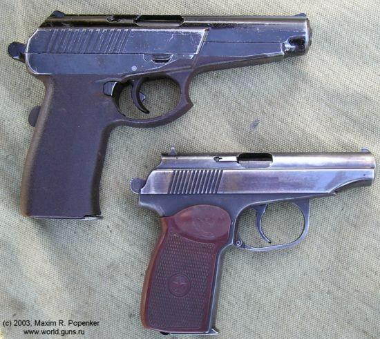 ![]() SR-1手枪与马卡洛夫PM手枪放在一起比较 |