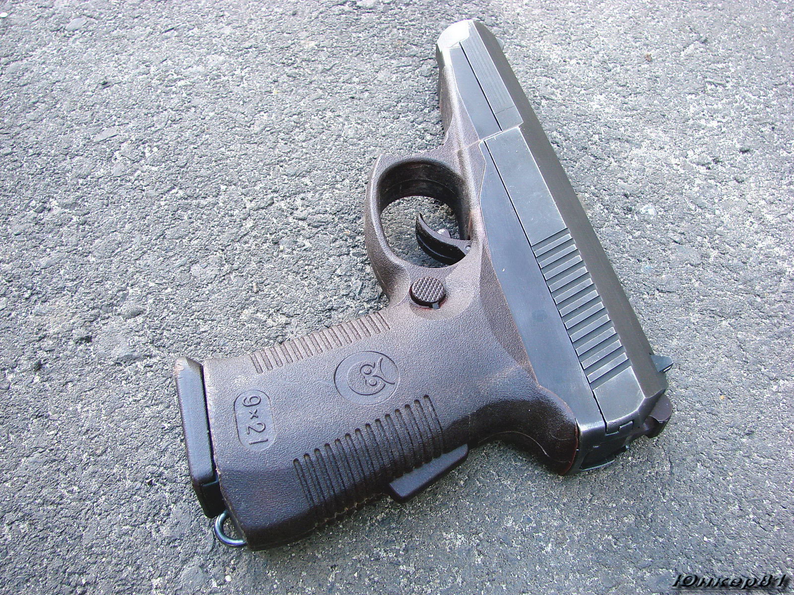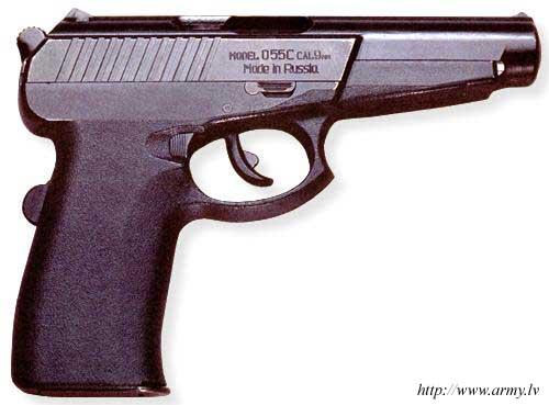 中央精密机械工程研究院(TsNII TochMash)所提供的方案最初称为P.I.(俄文П.И.),由彼得·谢尔久科夫(Петром Сердюковым)和伊戈尔·别利亚耶夫(Игорем Беляевым)领导的设计团队负责研制。所有参与竞争的研究方案都在1992年底完成原型枪的制造,而谢尔久科夫提供提供了两把样枪,其中一把的口径是7.62×25mm托卡列夫,而另一把却不是9×19mm口径,而是发射一种新的9×21mm口径穿甲弹。这种穿甲弹命名为RG052,是在1991年由中央精密机械工程研究院的设计师尤里科夫在同为该研究院以前研制的9×19mm口径PBP穿甲弹的基础上改进而成的一种高速弹药,在100米可穿透30层凯夫拉再加上2.8mm厚钛合金板组成的防弹材料。而谢尔久科夫所研制的发射这种手枪弹的手枪被命名为RG055(俄文РГ055)。同时按照用主设计师名字命名的习惯,也被称为“谢尔久科夫自动手枪”(拉丁化是Samozaryadnyj Pistolet Serdjukova,俄文是Самозарядный Пистолет Сердюкова),缩写成SPS(俄文СПС)。
