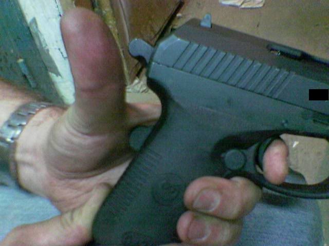 第一个改进型SR-1M手枪,可以看到握把背面的自动保险由半圆形改成长形
