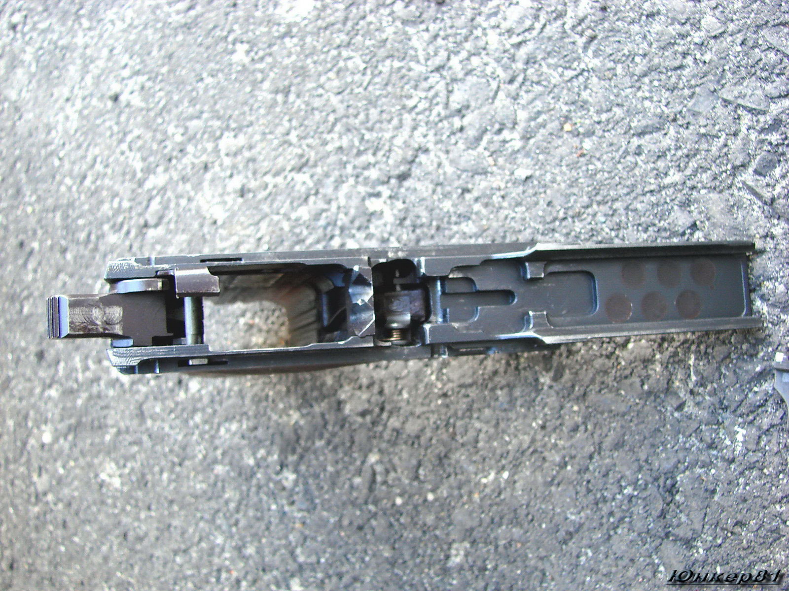 在试验中,9×21mm样枪的表现更好,因此7.62×25mm样枪不再继续研究。其实在研制出RG055之前,他们就研制了发射9×19mm PBP穿甲弹的样枪,在结构原理上和RG055样枪有不少相似之处,但不知道什么原因,9×19mm的方案没有得到进一步的发展。