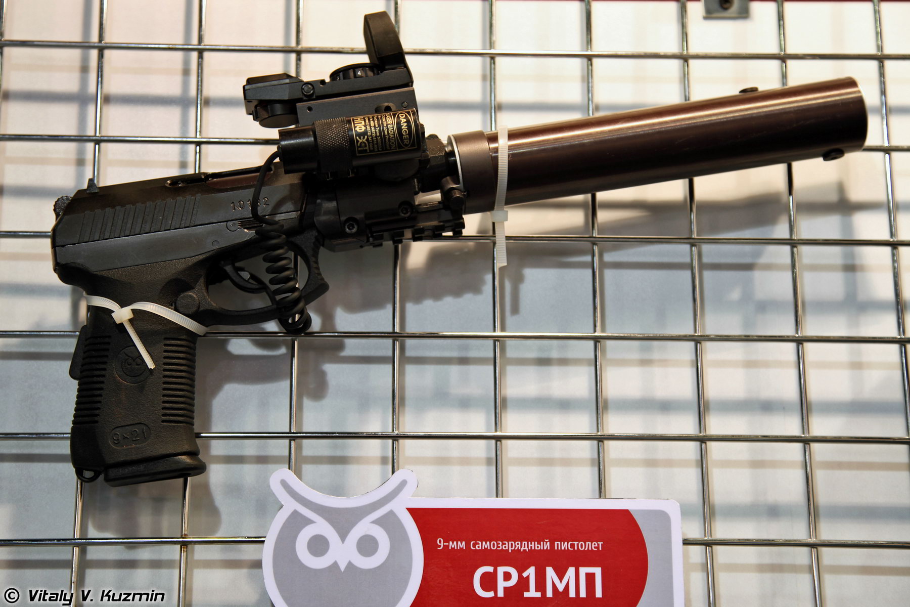 在2012年又推出了新的SR-1MP型,主要特点是枪口可外接消声器,另外底把前方的防尘盖上两侧有细长凹槽,底部还有螺丝孔,用于安装附件导轨。另外因为要配合比较沉重的消声器,SR-1MP改用了自由式枪机,但射击时会和OTs-23和OTs-33冲锋手枪一样,枪管会跟套筒一起先运动几毫米。