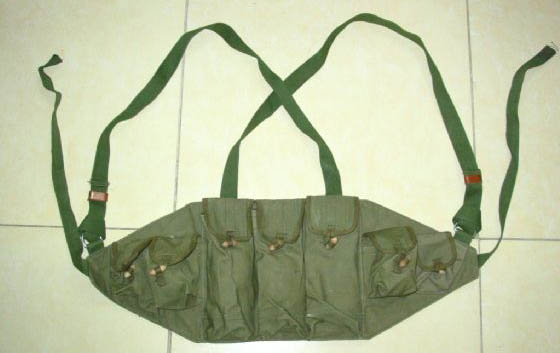 这是我军使用的一种弹匣袋,里面有5个格可以放56式冲锋枪或81式自动步枪的弹匣