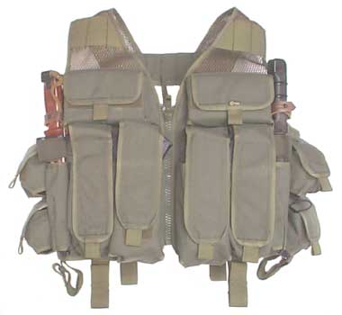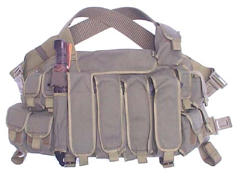 对越自卫还击战中有些单位提出原来的子弹袋只能携带3个弹匣,而手榴弹袋又需要另外携带,希望能够改进。所以就有了多种试验装备的不同携具,比如此种可以携带4个弹匣而且还有6个无柄手榴弹袋的背心就是其中之一。在其他款式的携具时在,有些用松紧带(比魔术贴要安静)、有些甚至有空弹匣收集袋。这些携具主要由侦察兵装备和试用,但不知道什么原因,很多携具都没有得到推广或在战后保留下来。