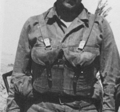 胸挂式子弹袋是在背后绑带打结固定的,因此常常需要其他战友的帮忙和检查。