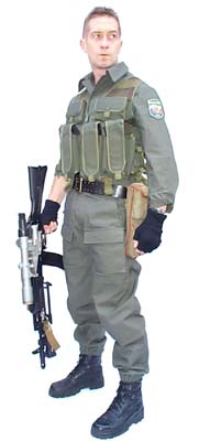RM32型突击背心是为俄军的特种部队SPETsNAZ、内务部(山地)部队内务部及其他的反恐怖特种部队设计的,4个竖向的弹匣袋放8个AK弹匣(或4个RPK弹匣),4个RGO/RGN手榴弹袋(内有保险销钩袋),1把刺刀/匕首,3个信号弹发射器,无线电,2个文件袋和1个多用途大袋,弹药袋也是有排水设计,文件袋则是防水的,还有附加袋的外挂点,前拉链设计。主要有丛林迷彩的RM32-F和卡其色的RM32-G两种。