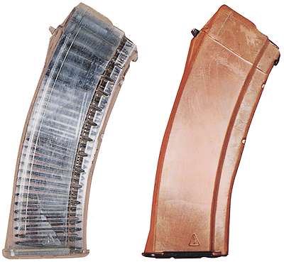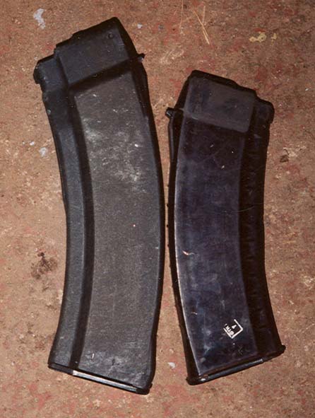 AKM塑料弹匣(右)与AK-74弹匣(左)的对比