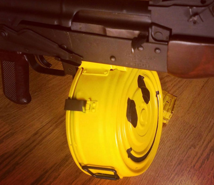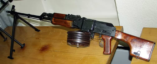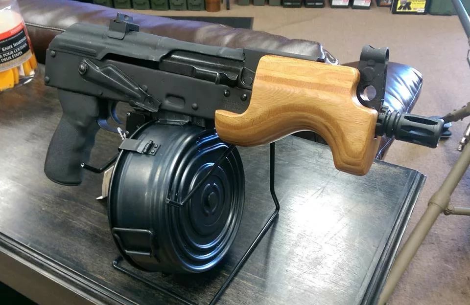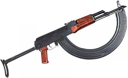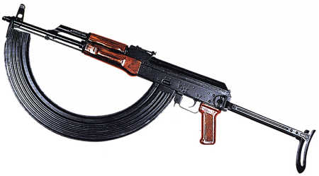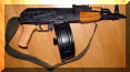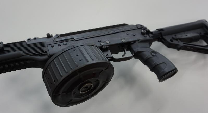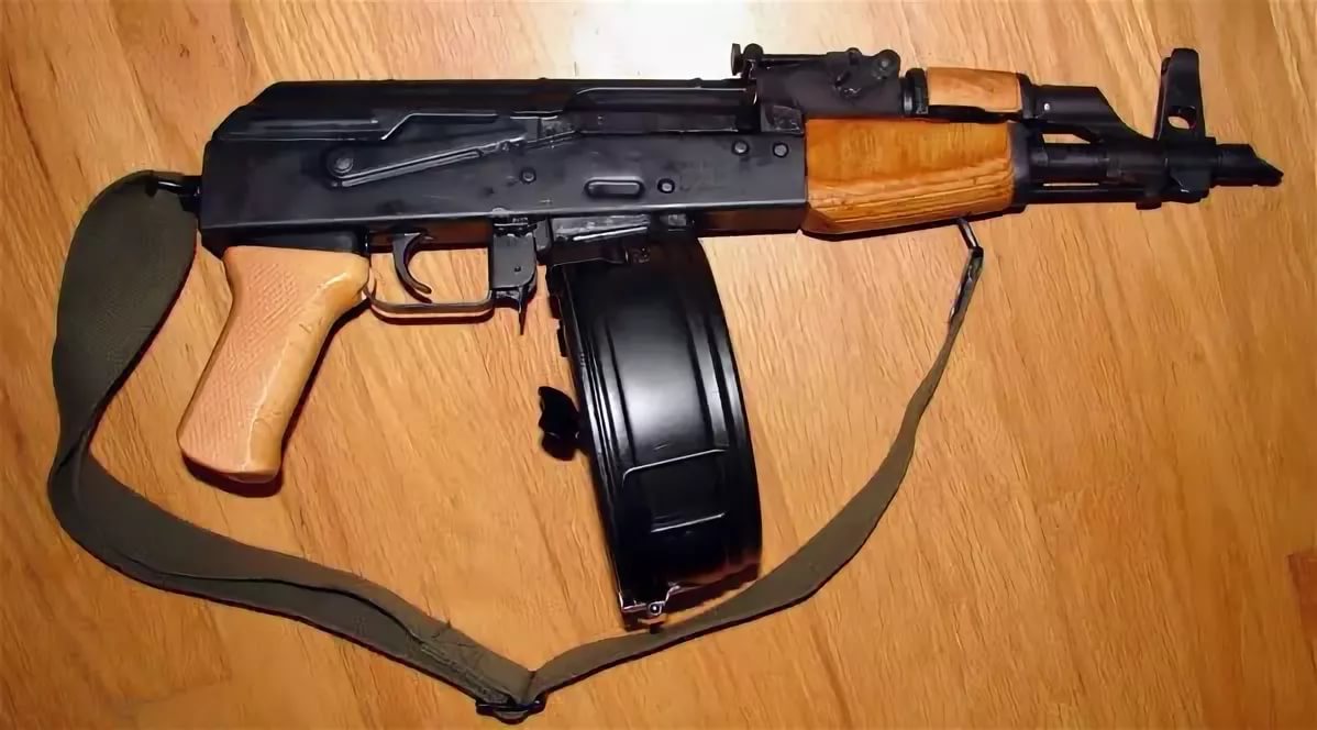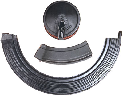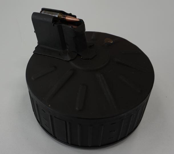 为5.45mm口径的RPK-74轻机枪设计的大容量弹鼓不同于RPK的竖放式设计,而是平放式,设计的目的是为RPK-74提供更持久的压制火力,而又不影响火线高度。这种弹鼓容弹量90发,空重1.1kg,高120mm,直径145mm。