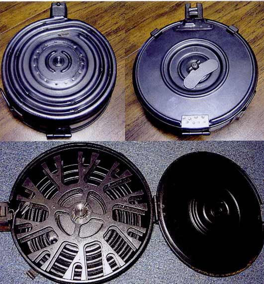 从上到下分别为90发弹鼓、60发弹匣和100发弹匣