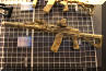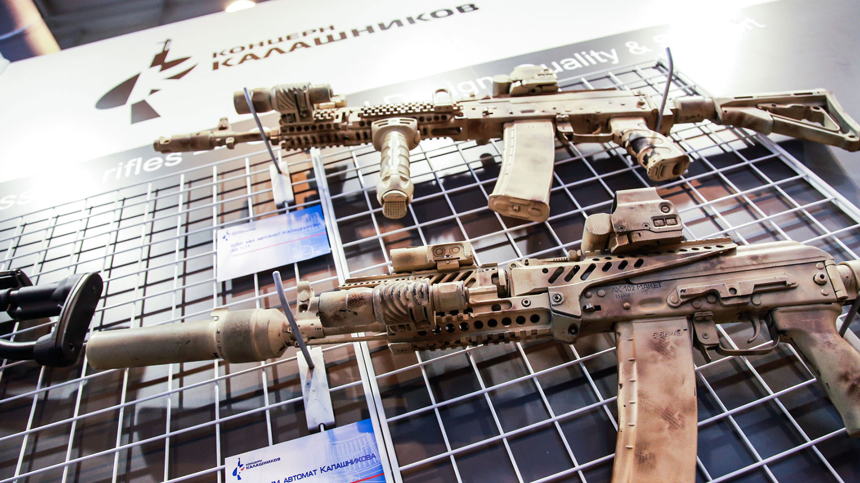 军事展销会上展出的装上导轨和M4伸缩式枪托的“官改西化”AK102