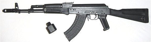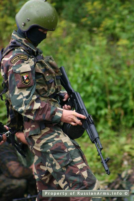 俄军特种部队装备的AK-103,此枪使用了RPK轻机枪的75发弹鼓