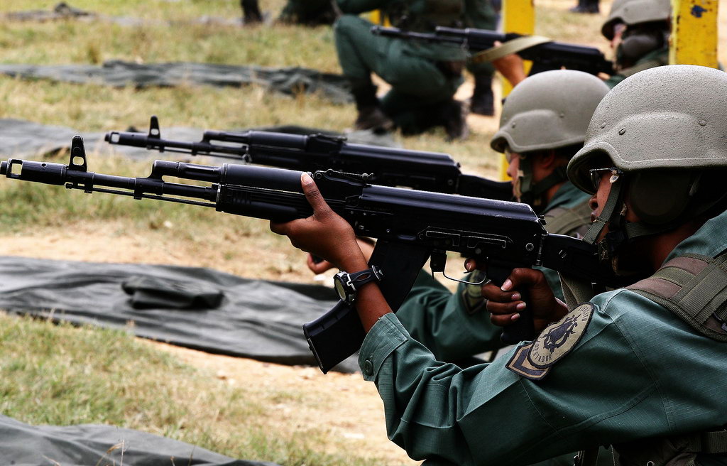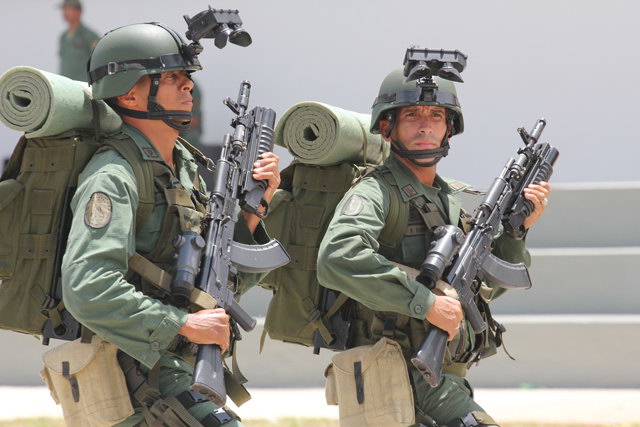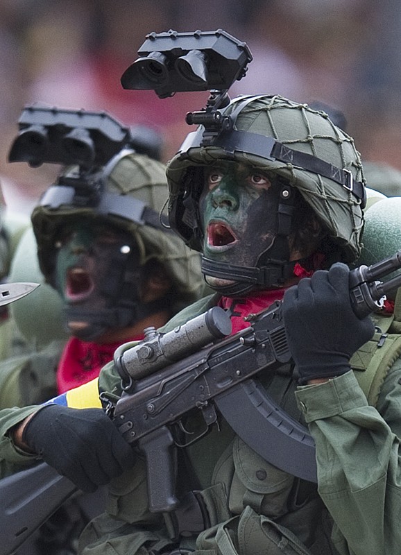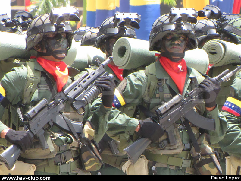 ![]() 委内瑞拉阅兵式上的特种部队,在AK103下面挂上M203 |